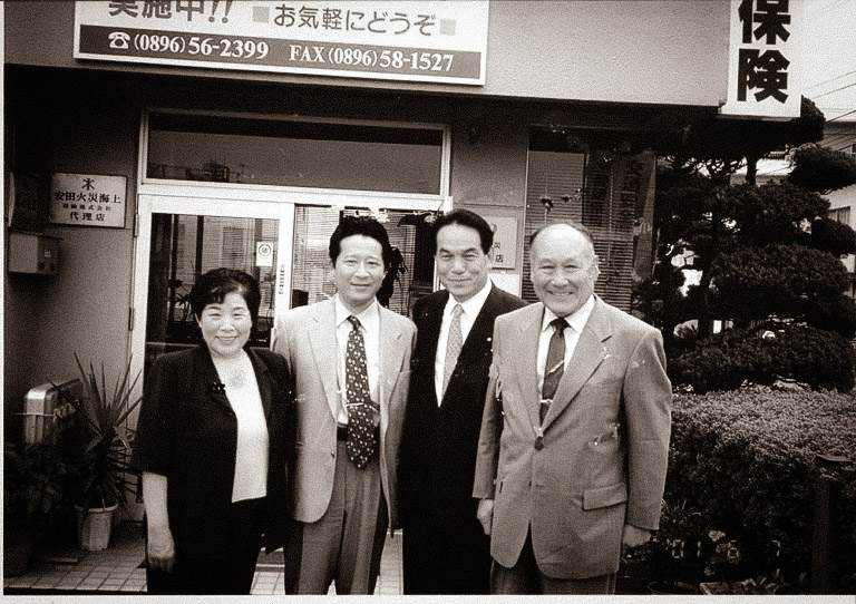 アフラック創業者の大竹社長(右から2番目)が来店されました(2001/6/7)